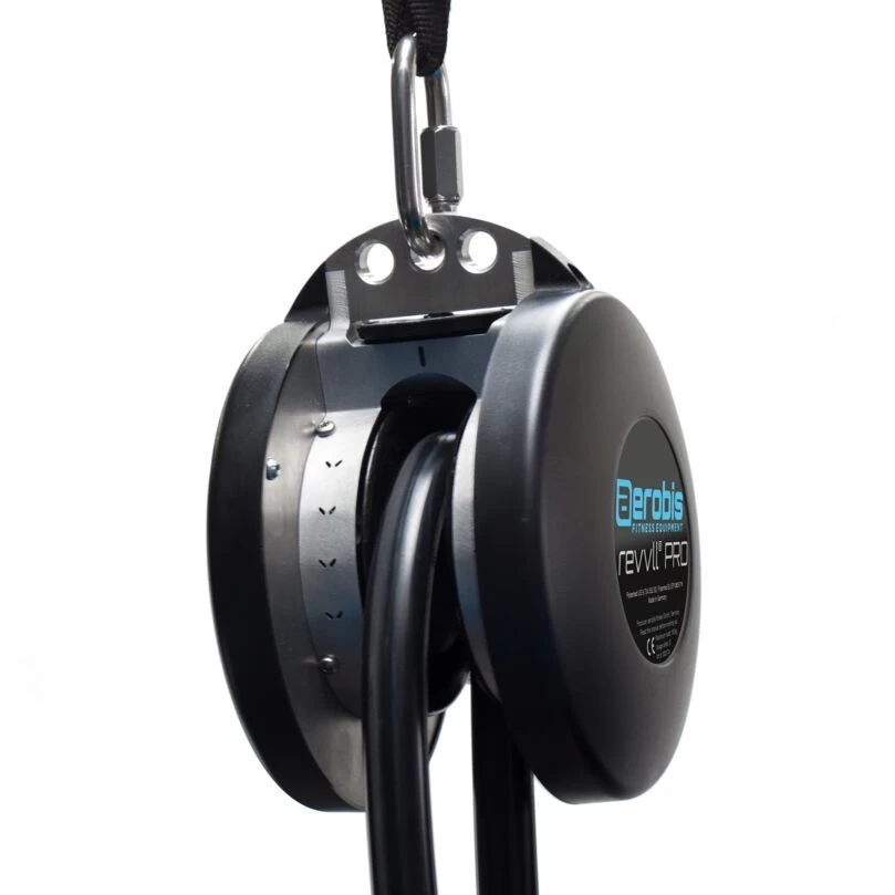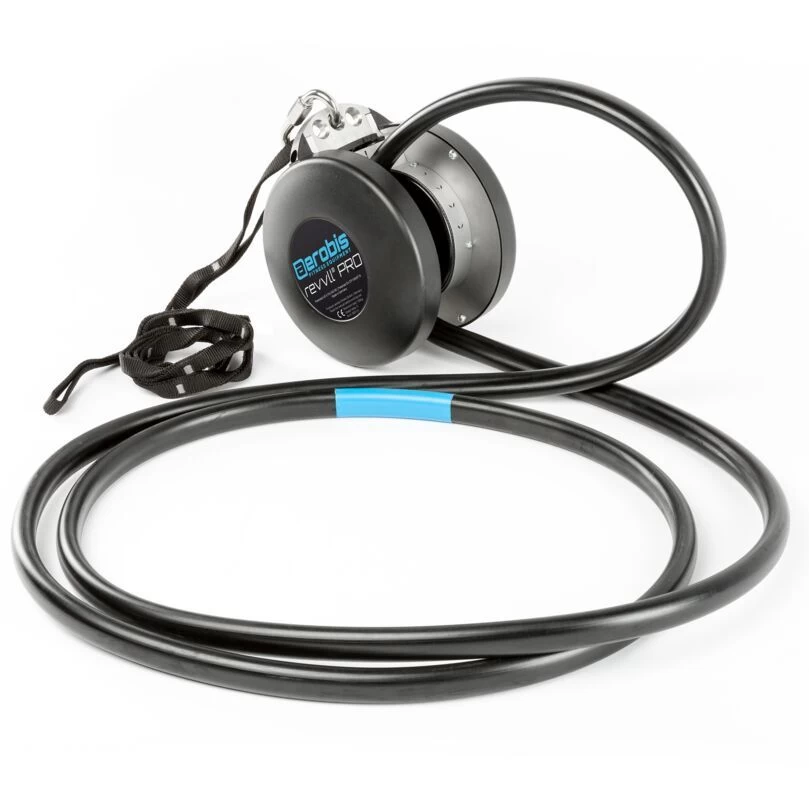Mobiler Seiltrainer in Studioausführung. Der Seiltrainer hat eine innovative Wirbelstrombremse für 6 verschiedene Widerstandseinstellungen. Mit dem Seiltrainer kann man unzählige Übungen für Anfänger und Profis mit Zug-, Druck- und Rotationsbewegungen in alle Richtungen zur Verbesserung von Kraft, Ausdauer und Koordination durchführen. Anhand der farbigen Markierung auf dem Seil können die Seilumdrehungen gezählt werden.