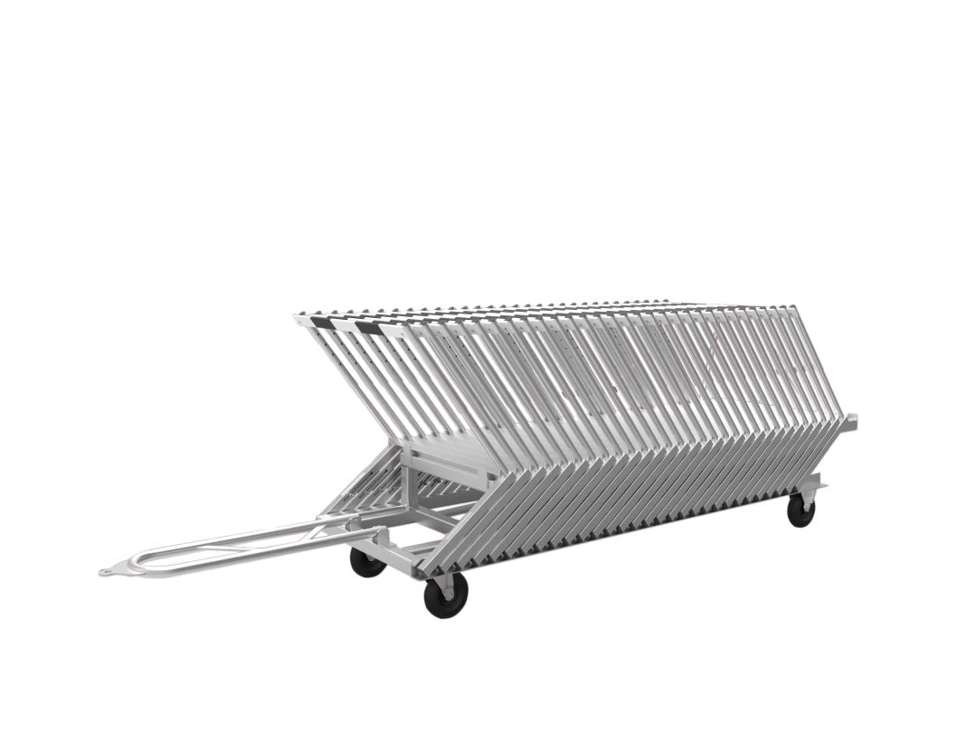 Ob für das Training oder für den Wettkampf eine ordentliche Transportmöglichkeit. Mit dem Alu-Hürdentransportwagen ist eine einfache und platzsparende Aufbewahrung von bis zu 30 Hürden gewährleistet. Die verschweißte Konstruktion aus Aluminium ist mit einer Zugdeichsel für Hand- und Anhängerbetrieb ausgestattet und robust. Der Transportwagen ist dennoch sehr leichtgängig durch die luftbereiften Räder mit einer Einzelradaufhängung. Da der Wagen von hinten begehbar ist, ist das Be- und Entladen sehr einfach.