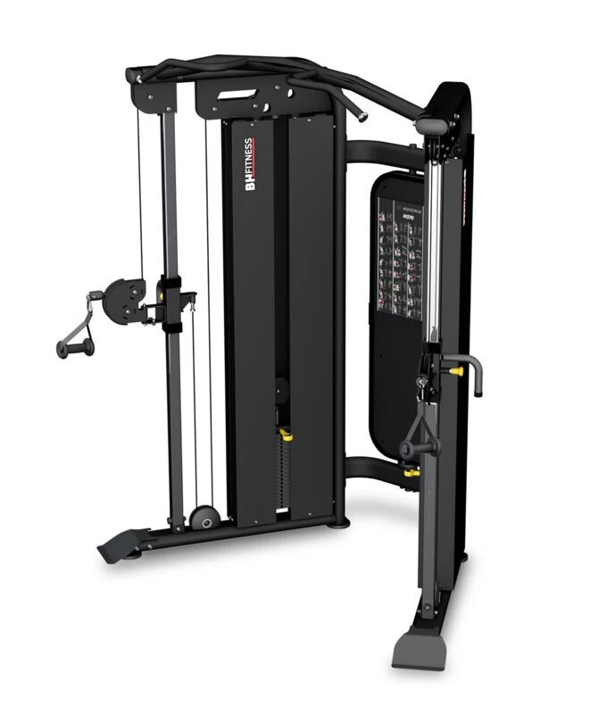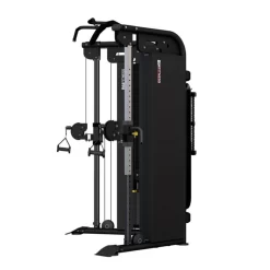Der Doppelseilzug bietet zwei robuste Gewichtsstecksysteme mit je 90 kg Gewicht und langlebige, beschichtete und Nylon-ummantelte Stahlkabel für ein gleichmäßiges und leichtläufiges Trainingsgefühl. Die Doppelrollen sind in 30 verschiedenen Höheneinstellungen flexibel verstellbar und können um bis zu 180° rotiert werden. Ergänzt werden die beiden Seilzüge durch eine Klimmzugstange, die die Konstruktion oben verbindet, einer Informationstafel mit Abbildungen einer Vielzahl von Übungen und insgesamt 7 verschiedenen Trainingsgriffe, -seile und -stangen.