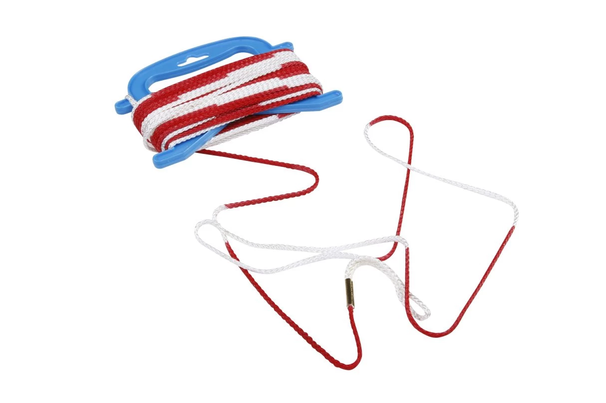 aus 5 mm starker Nylonkordel geflochten, im Abstand von 20 cm farblich abgesetzt (verschiedene Kontrastfarben zum Einsatz je nach Lichtverhältnissen), an beiden Enden mit Schlaufen, 21 m lang.