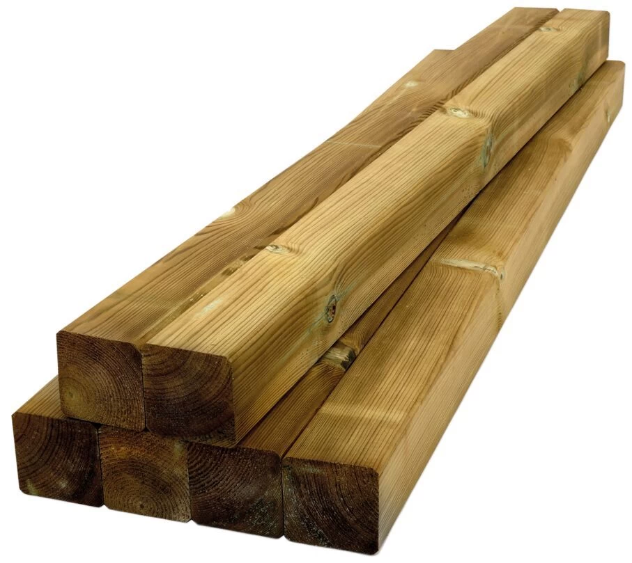 – 6 Kanthölzer, jeweils 150 x 9 x 9 cm, kesseldruck-imprägniert