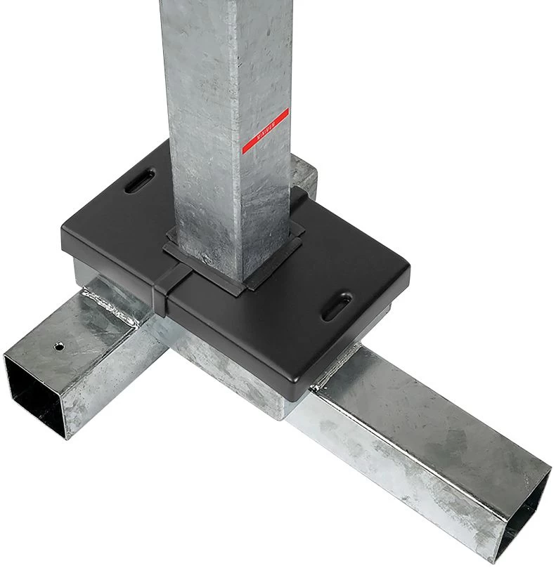 – System-Bodenhülsen, feuerverzinkt, mit Exzenterhebel zur Arretierung des Netzpfostens