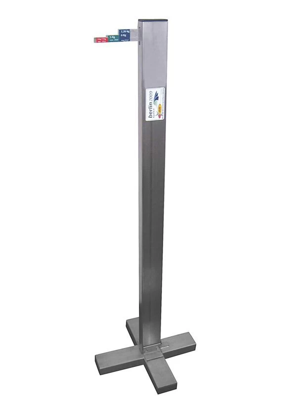 Mit diesem Gerät überprüfen Sie schnell und unkompliziert die Länge das Wettkampfhammers, den Schwerpunkt des Hammerkopfs sowie die Stärke des Drahts.