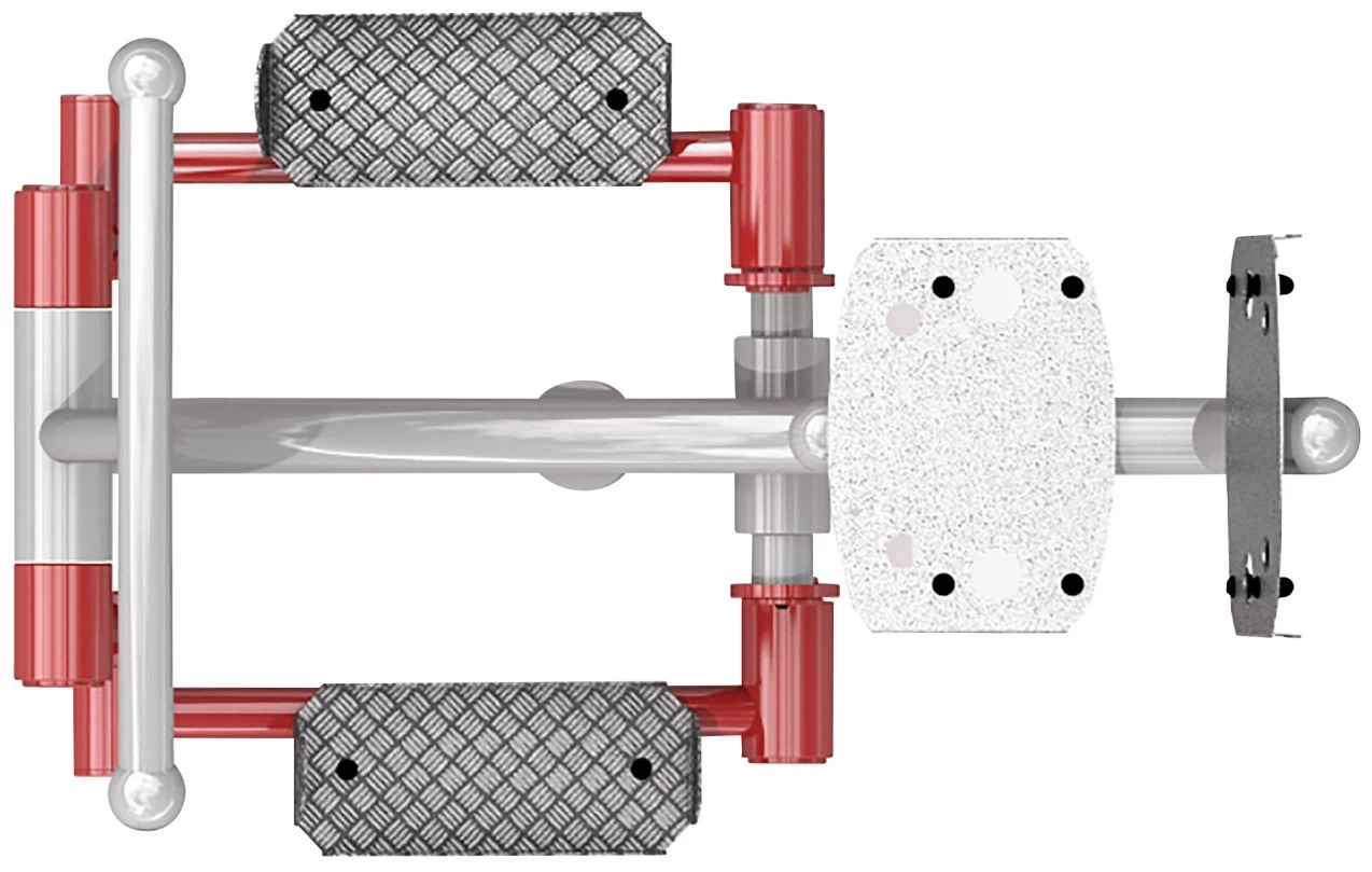 Das Gerät besteht aus korrosionsgeschütztem und pulverbeschichtetem Stahl, die Trittflächen aus Aluminium. Die Griffenden sind ergonomisch abgerundet verschweißt und für die Benutzersicherheit profiliert.