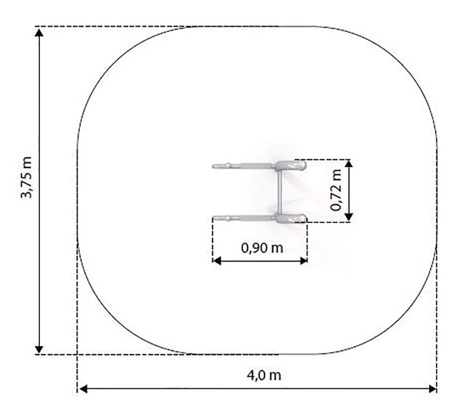 – Sicherheitsbereich: 3,96 x 3,72 m