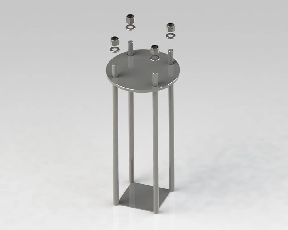 Das Gerät ist auf einem Stützpfosten montiert, der aus einem Rohr von 88,9 x 3,6 mm besteht. Der Mast ist mit einem Durchmesser von 220 mm und einem 12 mm dicken Flansch am Boden befestigt. Der Flansch mit dem gesamten Gerät wird mit M16-Schrauben am Boden verschraubt. M16-Ankermuttern sind gegen das Abschrauben gesichert.