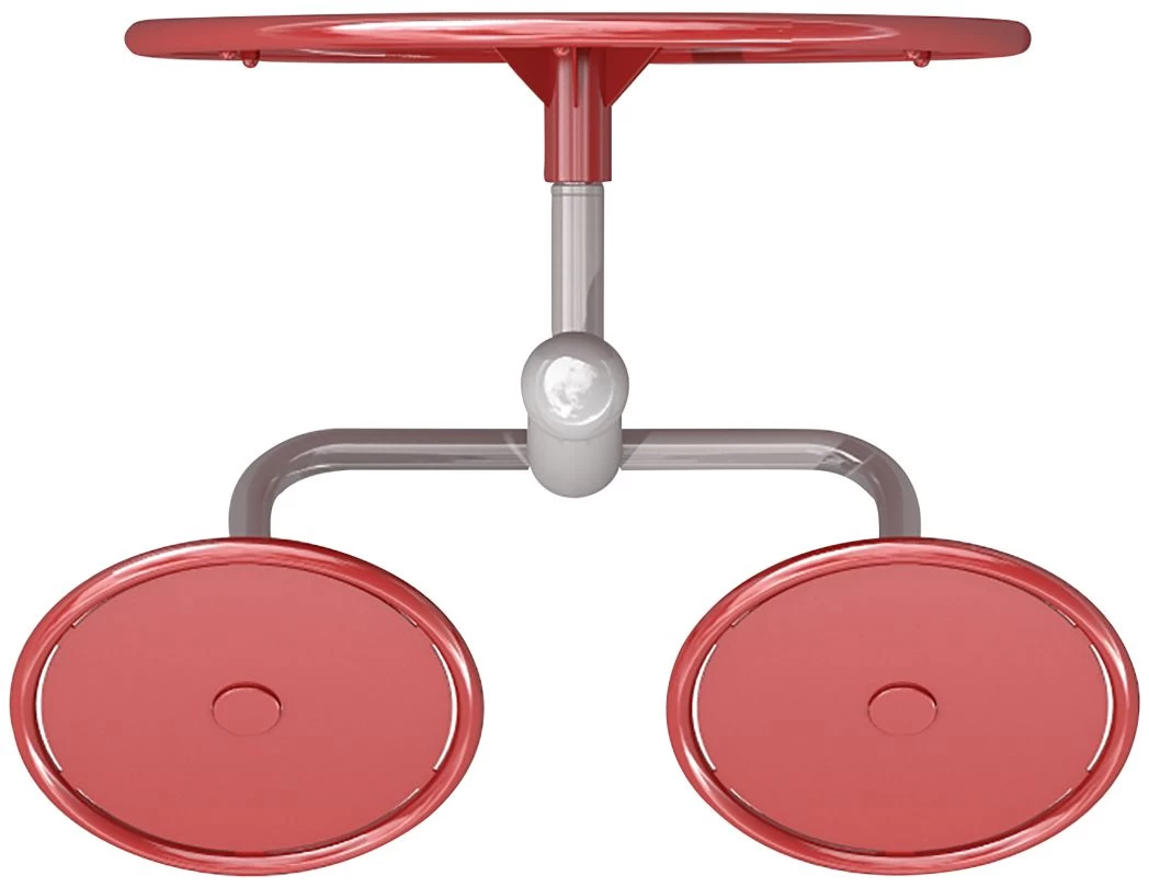 Der Pfosten des Geräts besteht aus korrosionsgeschütztem und pulverbeschichtetem Stahl. Die Lenkscheiben sind aus wetterfestem Kunststoff.