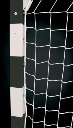 Das Handballtor aus Aluminium-Spezialprofil mit einer pulverbeschichteten Oberfläche hat zusätzliche Stahl-Verstärkungswinkel und dadurch eine enorme Stabilität. Das Bodenrohr sorgt zusätzlich für einen sicheren Stand. Geliefert wird der schwarz/weiße Torrahmen mit Bodenlaschen inklusive Befestigungsmaterial, Netzbügel aus Stahl und Netzhaken. Das Netz muss separat bestellt werden.