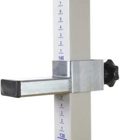 Ein Paar Hochsprungständer bestehend aus je zwei Stahlfüßen, Aluminiumprofilen und Lattenauflegern. Fuß T-förmig, korrosionsbeständig und mit Rollen ausgestattet. Die Aluminiumprofile (35 x 35 mm) sind mit einer Messskala von 50 – 220 cm versehen. Die beiden Lattenaufleger sind pulverbeschichtet.