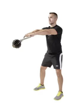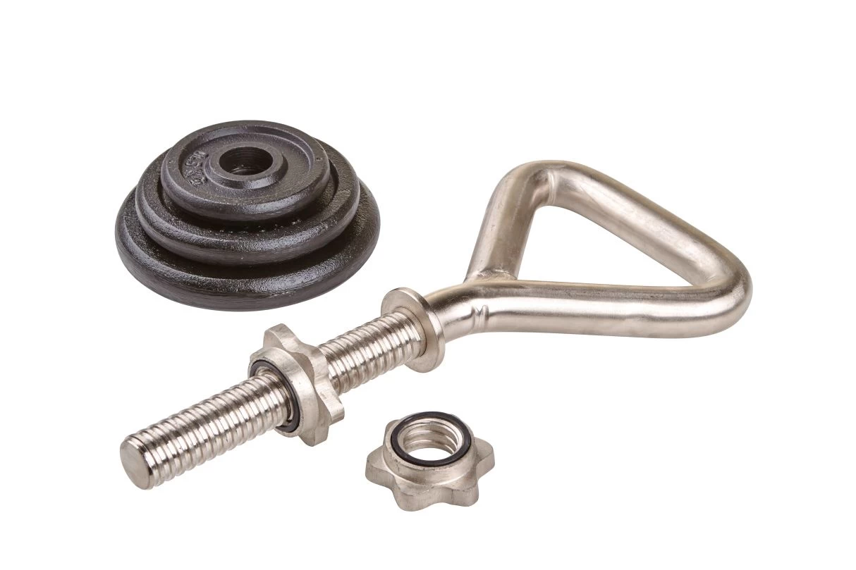 Gestalten Sie sich mit dem Kettlebell-Griff und Hantelscheiben ihre persönliche, variable Kettlebell. So können Sie sowohl für den Einstieg und zum Erlernen der Technik ein kleineres Gewicht auflegen und dies je nach Trainingserfolg in kleinen Stufen steigern.