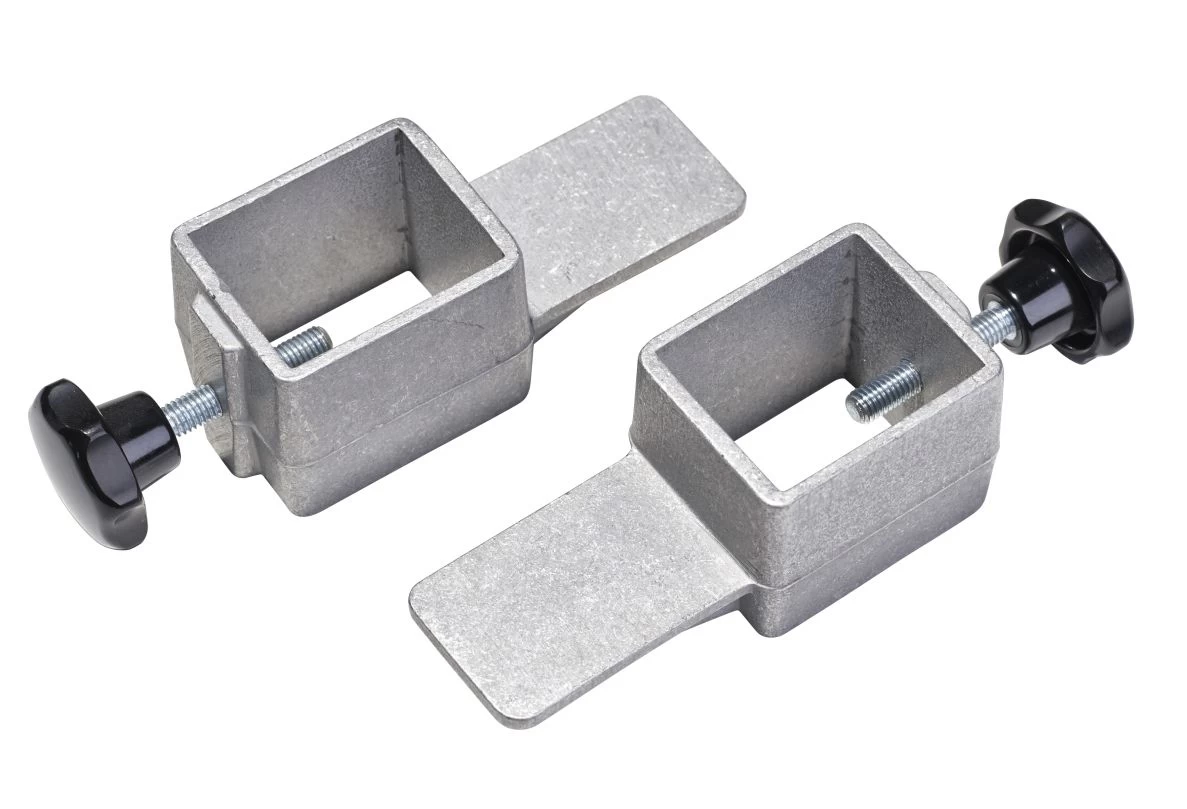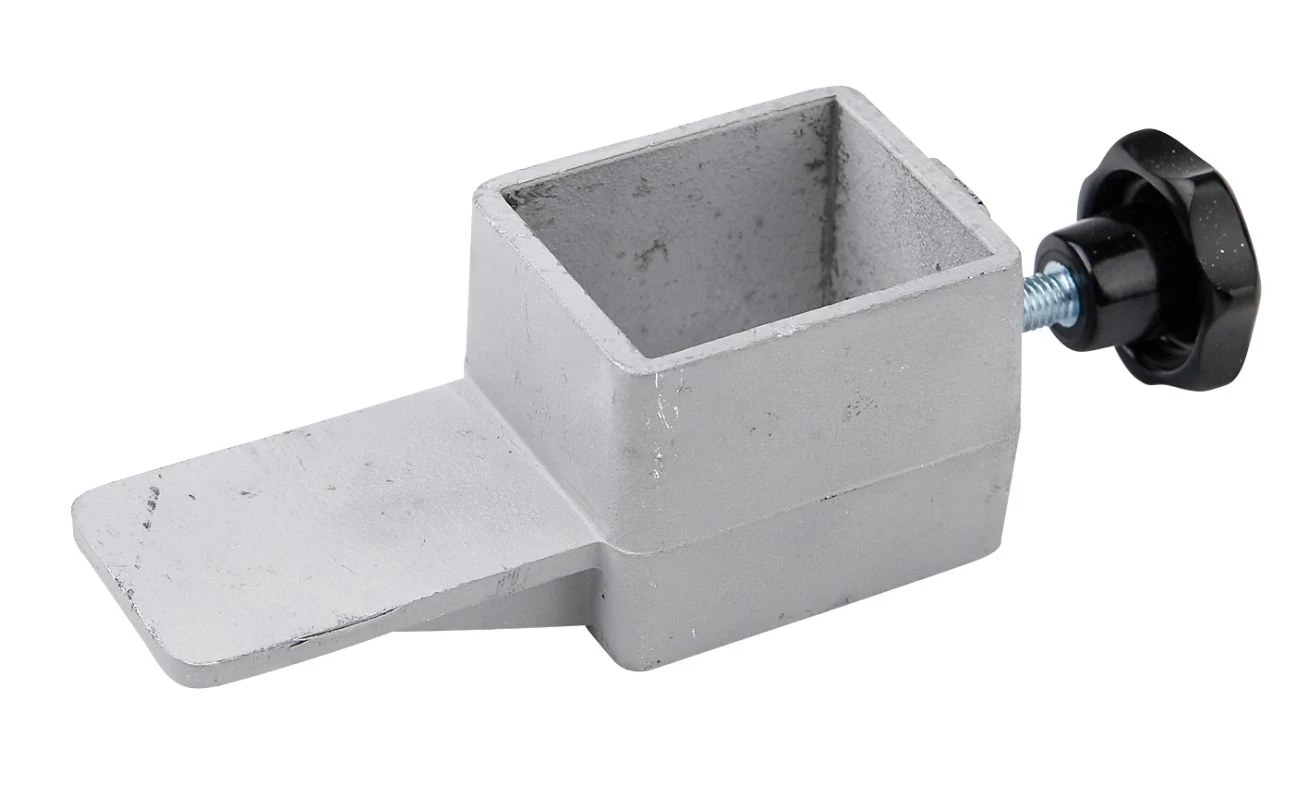 Lattenaufleger aus Aluminiumguss mit Feststellschraube, passend für Säulenprofile bis 40 x 40 mm. Lattenauflegefläche 40 x 60 mm nach Vorschrift. Für ein Paar Hochsprungständer werden 2 Auflageschieber gebraucht.