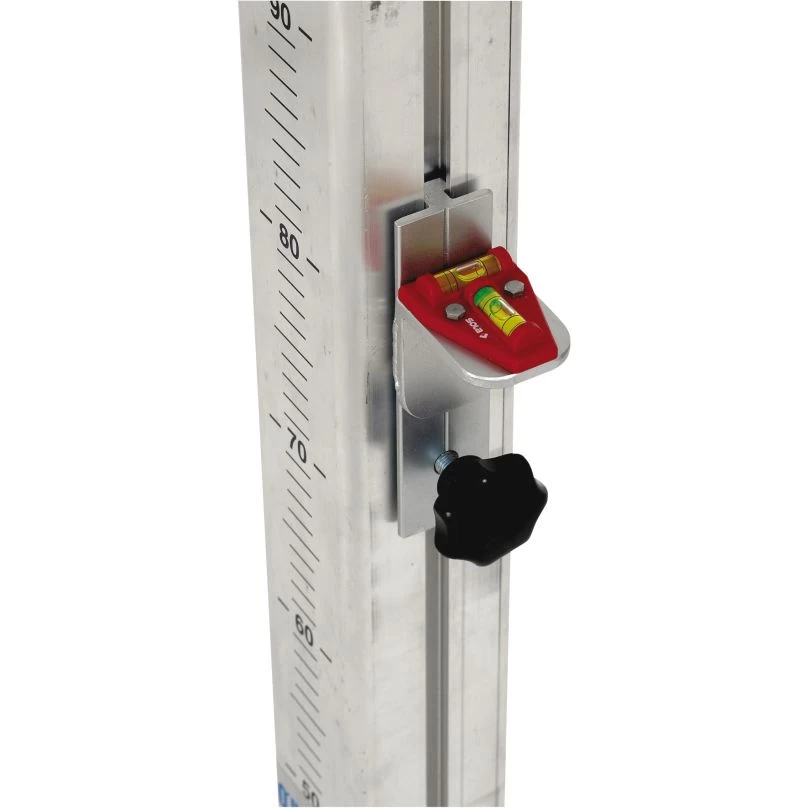 Die Libelle ist eine Wasserwaage auf der Auflage für die Sprunglatte. So kann gemessen werden, ob die Lattenenden der Sprunglatte auf einer geraden waagerechten Fläche liegt.