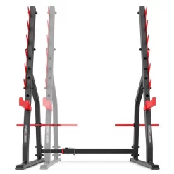 Die verstellbare Hantelablage eignet sich durch die 3-stufige Breitenverstellung für Langhanteln verschiedener Längen. Auch die Höhe ist in 3 Höhen verstellbar und bietet je 6 Ablagemöglichkeiten um eine Vielzahl an Übungen ausführen zu können. Die seitlichen Hantelscheibenhalterungen haben einen Durchmesser von 25 mm. Die Querverbindung bietet eine sichere Bauweise und verspricht ein sicheres, risikofreies Training.