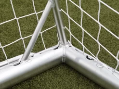 Das mobile Jugend-Fußballtor ist vollverschweißt, silber und besteht aus Aluminium. Mit der integrierten Bodenverankerung, bestehend aus 2 spiralförmigen Erdankern und den angeschweißten Laschen am Bodenrahmen ist das Tor nach DIN-EN 748 kippsicher und sicherheitsgeprüft. Die Netzbefestigung ist mit der integralen Netzschiene Simply Fix zur einfacheren Montage und optimaler Fixierung des Netzes. Die Netzrandschnur verschwindet vollständig in der Profilnut was auch optisch ansprechender ist als die bekannten Kunststoffnetzhalter.