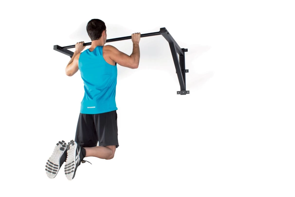 Klimmzugstange zur Wandbefestigung aus schwarzem Stahl. Mit einer Ausladung von 85 cm auch zur Anbringung von Sling Trainer oder Powerbands sehr gut geeignet.