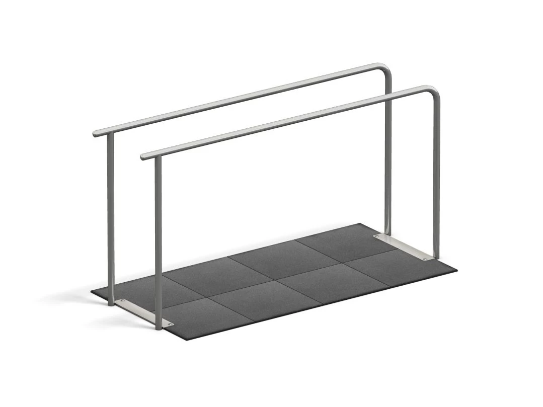 Edelstahlbarren, die für das Training der Stütz-, Arm- und Schultermuskulatur konzipiert sind. Die Enden sind mit „Umgreif-Kugeln“ versehen.