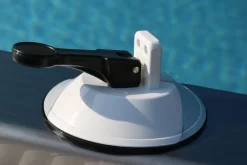 Saugnapfhalter – ideal zum Fixieren für Wasserspiele und Leinenbefestigung. Befestigungsbügel und Super-Saugnapf für feste Verankerung, wo immer man will. Hält auf jeder glatten Fläche von mind. 12×12 cm.