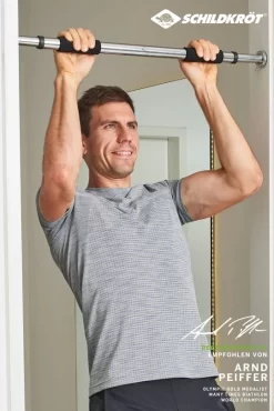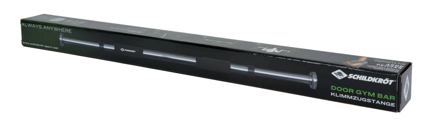 Zur Schonung des Türrahmens ist die Stange beidseitig mit Gummiauflagen versehen. Für eine sichere Anbringung sind im Lieferumfang zwei Hülsen enthalten, die im Türrahmen verschraubt werden können. Das Türreck ist für Türrahmen mit einer lichten Breite von 63-96 cm geeignet. Die Stange ist über einen Schraubmechanismus stufenlos längenverstellbar und wird so, ohne den Einsatz von Werkzeug einfach in den Türrahmen gespannt.