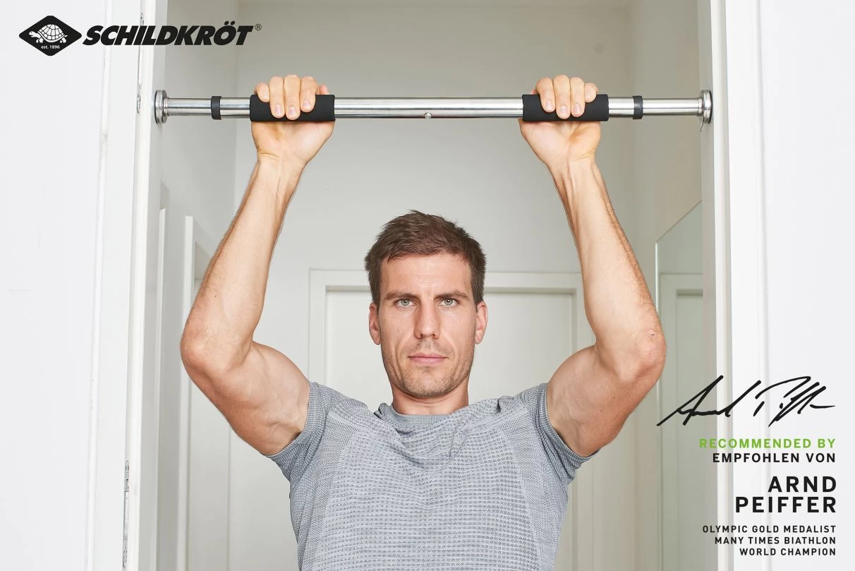 Für Übungen in einer kopfüber hängenden Position, z.B. mit Hanging Shoes bzw. Gravity Boots empfehlen wir dringend, die Klimmzugstange nur mit den Einschraubhülsen zu verwenden!