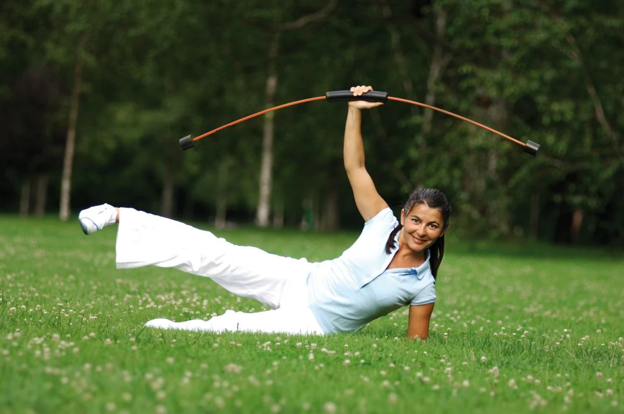 Das Training mit dem Schwungstab ist eine gesunde, gelenkschonende und effiziente Trainingsform. Stoffwechsel und Herz-Kreislauf werden angekurbelt und Motorik und Koordination verbessert. Gleichzeitig werden Verspannungen in Nacken, Schulter und Rücken vorgebeugt und Halte- und Stützmuskulatur gestärkt.