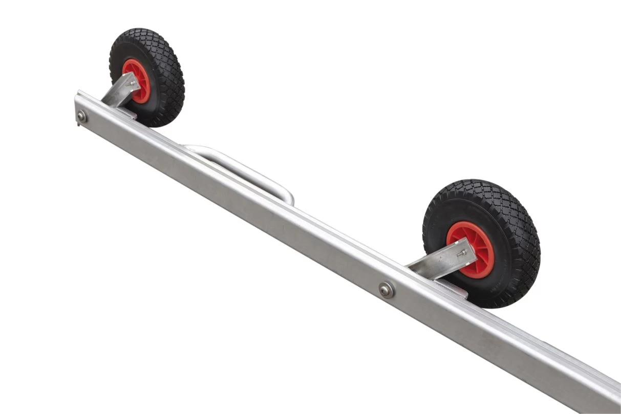 Die 4 seitlich angeschweißte Rollen werden einfach umgeklappt.