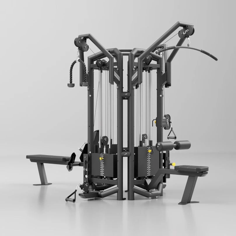 Der 4-Stationen Verbinder UF-015 ist Teil des professionellen modularen UpForm-Systems. Mithilfe des praktischen Kleinteils können die Trainingsstationen an deren oberen hinteren Auslegern sicher miteinander zu einem Mehrstationen-Turm verbunden werden.